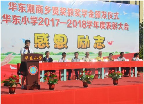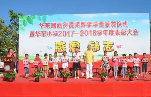 当天下午四时,华东小学在学校运动场举行华东乡贤奖教奖学金颁发仪式暨华东小学2017-2018学年度表彰大会。此次表彰大会奖教奖学金全部由我会创会会长吴开松、名誉会长卓振波、副会长吴茂强捐赠,共计捐献资金近15万元。(三位乡贤今年暑假又捐资近10万元改造学校用电线路。)