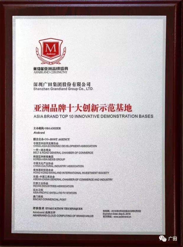 近日,由专业评价机构Asiabrand发起,联合中国亚洲经济发展协会、一带一路总商会、韩国亚洲新闻集团、中国文化产业协会、香港国际投资总会、东盟-中国工商总会、印度工业协会、亚太卫视、澳门商报等单位联合主办的“第13届亚洲品牌盛典”在香港地区隆重开幕。在此次盛典中,广田集团董事长范志全获得“中国(行业)十大领军人物”荣誉,我会名誉会长单位广田集团荣获“亚洲品牌十大创新示范基地”荣誉。