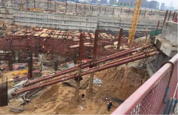 该工法针对深基坑超长双管斜撑施工技术进行了研究,通过预先施工的格构立柱对超长双管斜撑的中部进行固定,缩小斜撑局部长细比,增强稳定性;斜撑的顶部采用钢肋板与腰梁相连,底部采用钢筋混凝土牛腿支撑,实现了施工便利、安全可靠、综合成本低的效果,形成了相应的施工新技术。