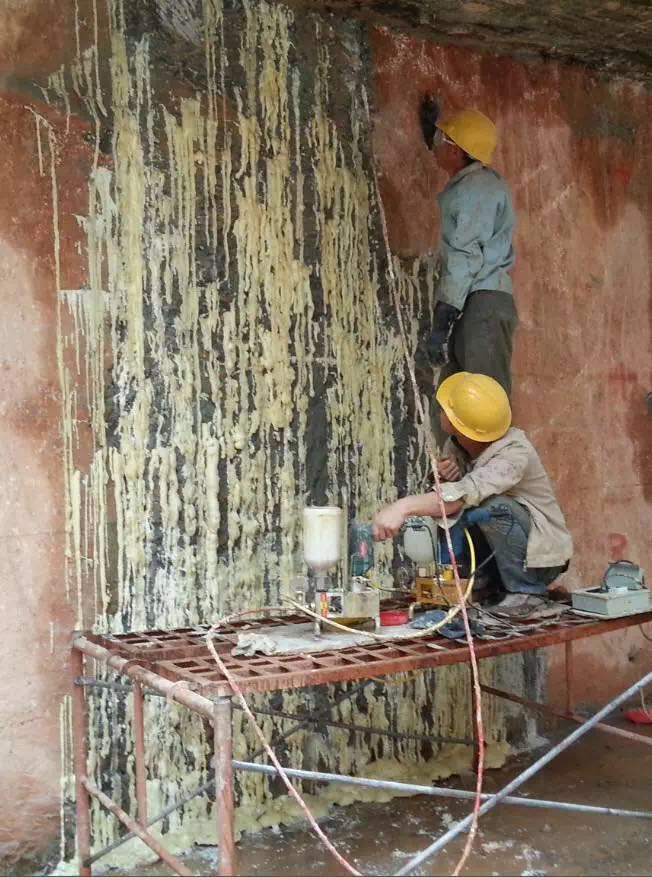该工法针对深基坑地下连续墙渗漏钻孔埋嘴高压灌浆堵漏施工技术进行了研究,通过在渗水范围分布钻孔、埋设注浆嘴,将特定比例的油溶性聚氨酯和水溶性聚氨酯混合液灌入地下连续墙渗水部位,与水接触后可迅速发生反应,形成具有良好止水性能的发泡固结体,达到快速有效堵漏的目的,形成了相应的施工新技术。