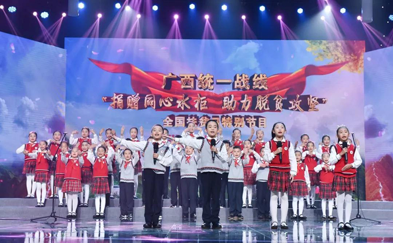 2018年10月17日,由广西壮族自治区党委统战部主办的广西统一战线“捐赠同心水柜助力脱贫攻坚”主题活动在广西电视台一号演播厅举行。自治区党委统战部、各民主党派区委、自治区工商联、自治区水利厅、扶贫办及各设区市党委统战部负责人、广西统一战线各领域代表人士共300余人参加活动。我会荣誉会长单位龙光集团执行副总裁、龙光慈善基金会理事长黄湘玲女士,龙光地产广西区域董事长郭晓洲先生出席活动,代表龙光慈善基金会向广西捐赠1000万元,帮助大石山区贫困家庭解决饮水困难。
