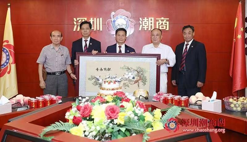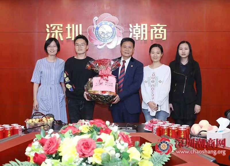 深圳市潮汕青年商会代表向黄育宏驻会会长(中)送上水果篮
