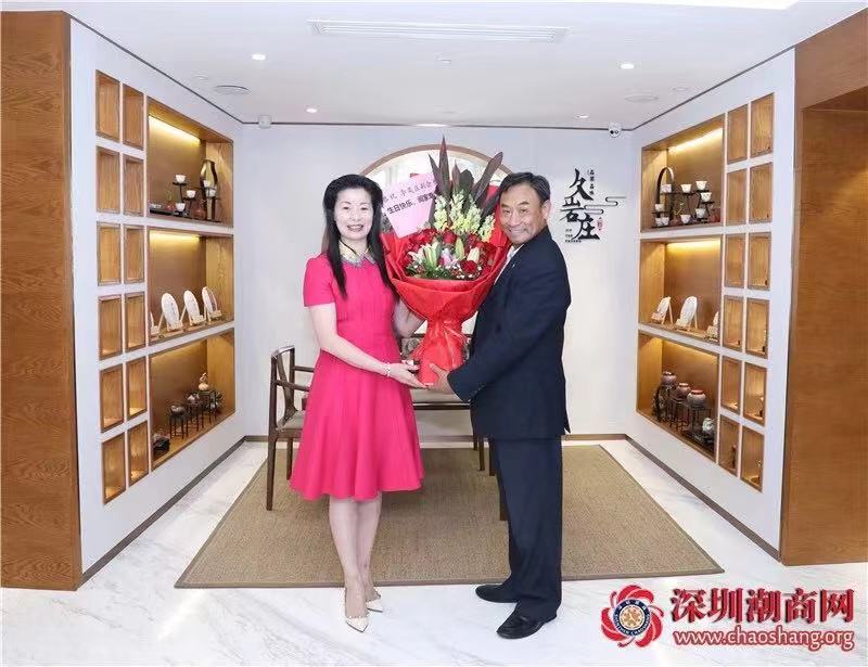 今天是李奕庄副会长的生日,黄梓琪秘书长代表商会向她送上一幅潮绣珍品作为生日贺礼和鲜花表示祝贺。