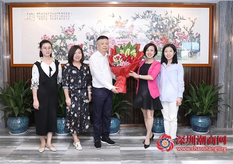 今天是刘智贤副会长的生日,黄梓琪秘书长代表商会向他送上一幅潮绣珍品作为生日贺礼和鲜花表示祝贺。