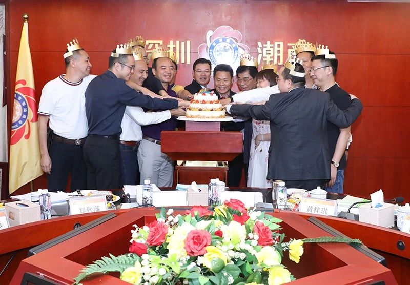 茶话会期间,商会为十二月份的寿星杨石明、郑秋藩、刘得辉、欧阳强、陈创强、温朝民、吴伟杰、魏伟光、庄研、肖巧璇、黄少军、陈坤忠送上生日蛋糕和一幅潮绣珍品作为生日贺礼。