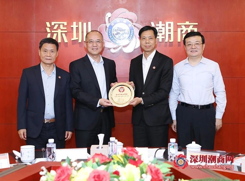 吴木棠会长(右二)代表商会向深圳市山东商会赠送纪念品
