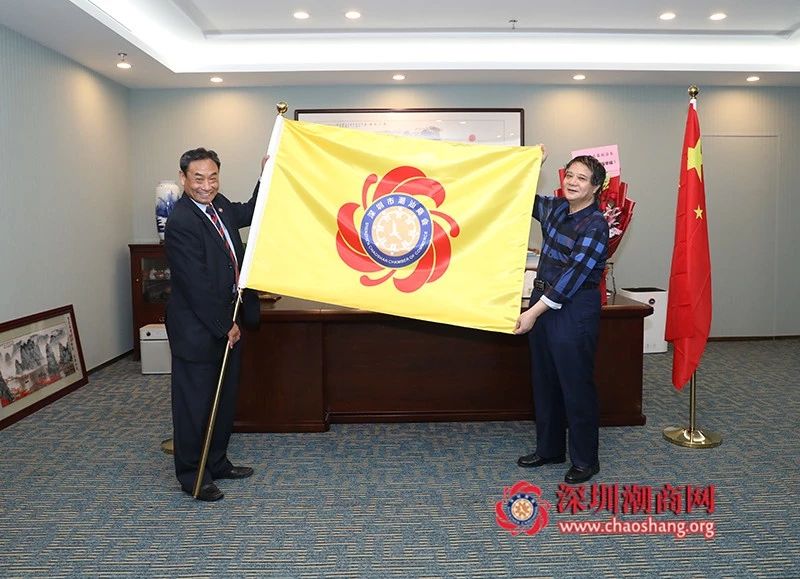 黄梓琪秘书长(左)代表商会向曾庆霖副会长(右)送上会旗
