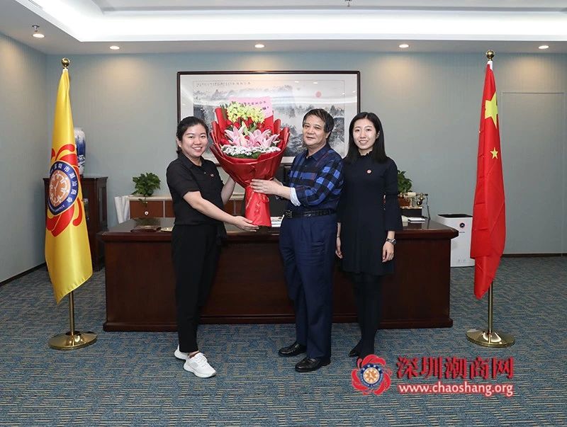 明天(12月7日)是曾庆霖副会长的生日,黄梓琪秘书长代表商会向曾庆霖副会长颁发副会长牌匾,送上会旗、纪念品,并送上一幅潮绣珍品作为生日贺礼和鲜花表示祝贺。