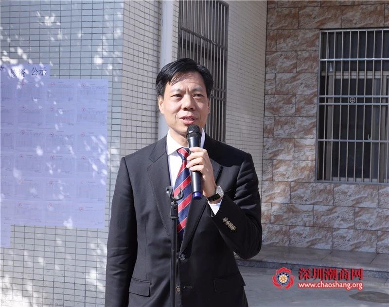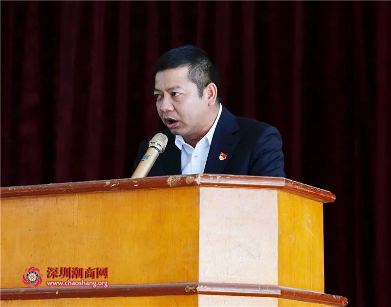 西岐村党委书记胡钦德,代表西岐村群众以及学校全体师生对商会的莅临表示热烈欢迎。他介绍,西岐村东接深沟,南连家美,西与胪岗镇港头毗邻,北与上盐村及和平镇新龙村相连。西岐村主要以水稻、生柑种植农业为主,兼床上用品、服装、文具、工业等为辅,现有人口18031人,人多地少,贫困家庭总共有94户。西岐学校现有学生1703人,教职员工87人,以“诚德、正行、启智、博学”为校训,是一所集管理和教学质量规范的学校,目前学校环境有待提高,此次商会捐赠善款主要用来建设校园,深圳潮商会响应党的号召,开展“乡村振兴”精准扶贫捐赠活动,在精神上、行动上都给予了赞助和鼓励,身怀感恩,将把西岐村建设成为美丽乡村。