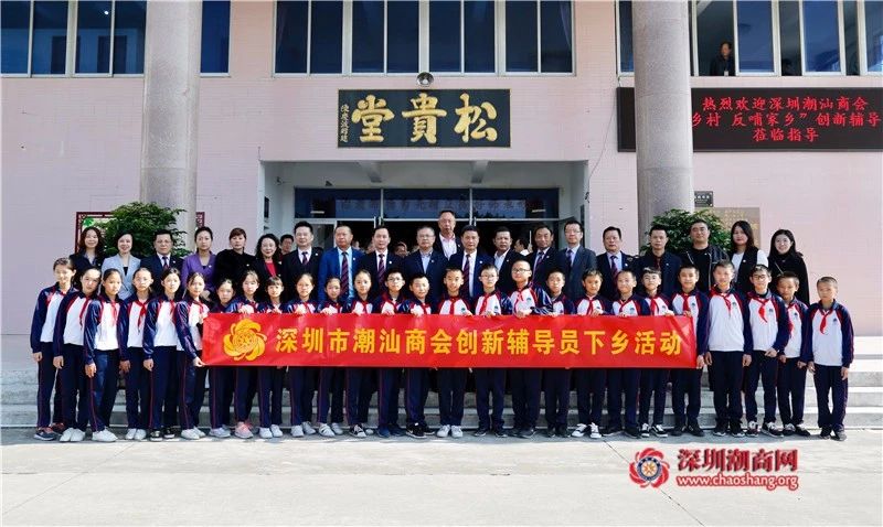 另一队潮南队在黄育宏驻会会长的率领下,到其母校西岐学校开展振兴乡村精准扶贫下乡活动。黄育宏驻会会长结合自己的人生经历和感悟为母校的学弟学妹和师生们上了一堂意义深刻的创新辅导课。