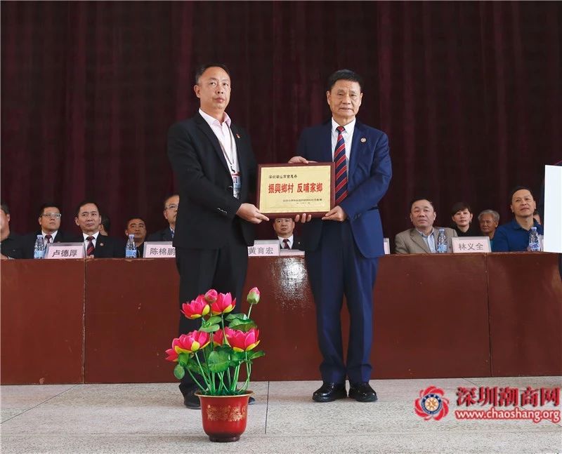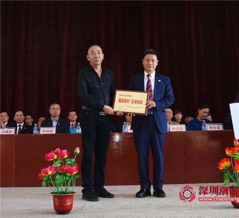 潮南区西岐学校代表向我会赠送“振兴乡村 反哺家乡”牌匾