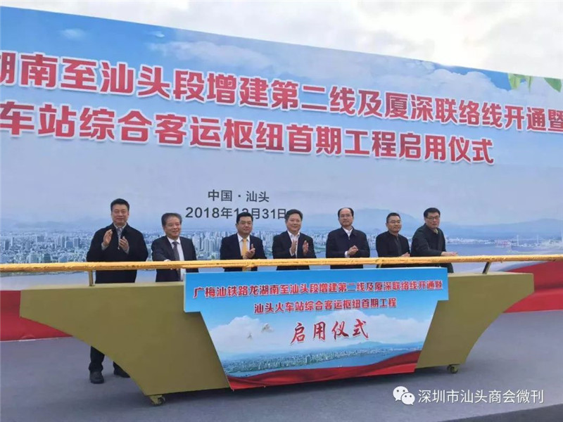12月31日上午,广梅汕铁路龙湖南至汕头段增建第二线及厦深联络线开通暨汕头火车站综合客运枢纽首期工程启用仪式圆满举行。