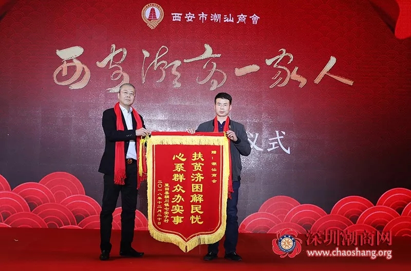 七安子村村支部书记张平虎向西安市潮汕商会赠送“扶贫济困解民忧 心系群众办实事”锦旗
