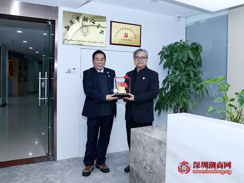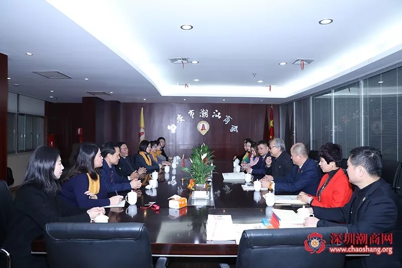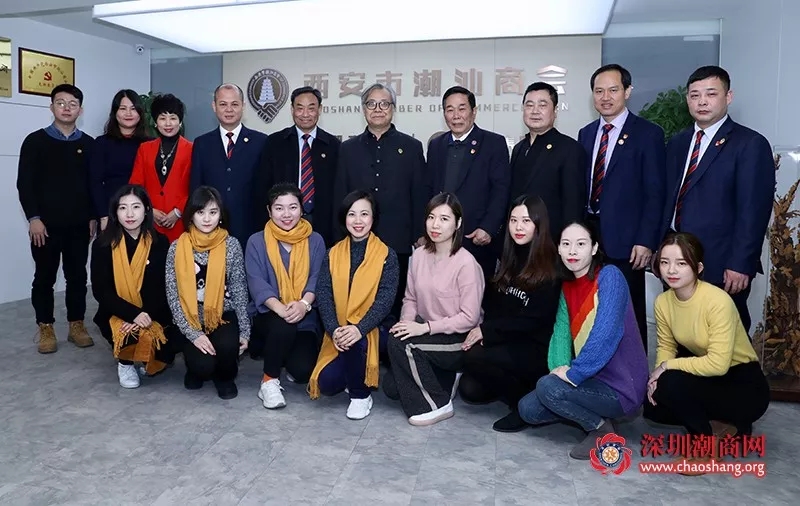西安市潮汕商会副会长蔡中豪,秘书长吴培坤,监事黄志红,副秘书长佘绍川,办公室副主任李盈佳,会员部副部长郑振才等热情接待我会领导并进行交流座谈。