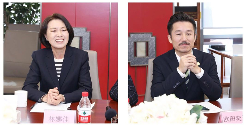 深圳潮青会名誉主席林娜佳(左)、常务副主席欧阳奕平(右)发言