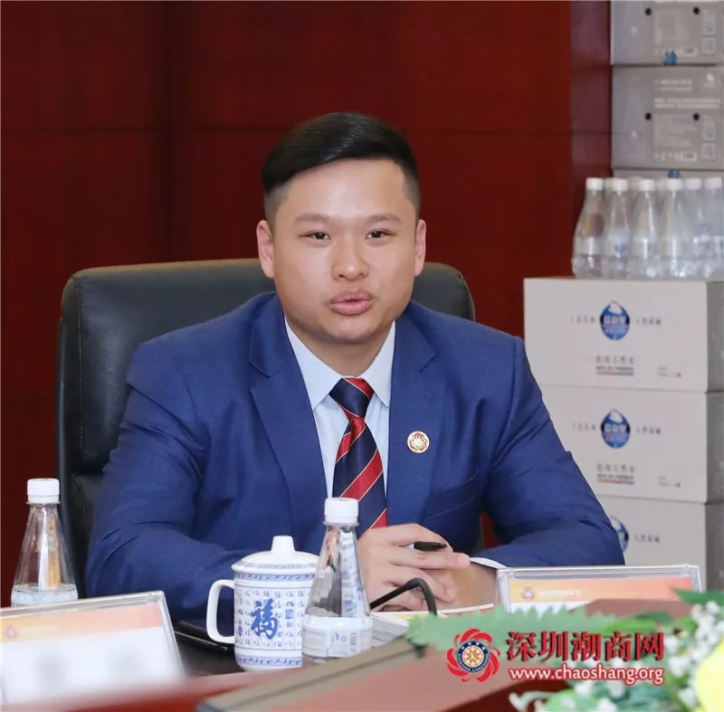 我是潮州铁铺人,生于1993年,毕业于上海外国语大学,我们公司位于深圳市罗湖区,旗下自创餐饮小吃连锁品牌“炸技团”首店位于罗湖水贝IBC MALL,公司已有投资运营餐饮店铺:盛味堂韩式烤肉店、探鱼、又卷烧饼。炸技团,以油炸类小吃+茶饮+潮流文化相结合的新形式,诠释新一代年轻人的潮流文化及饮食习惯。今天很荣幸与各位优秀企业家交流学习,我将紧紧围绕商会办会宗旨,发挥青年人的优势,为商会的发展贡献自己的力量。