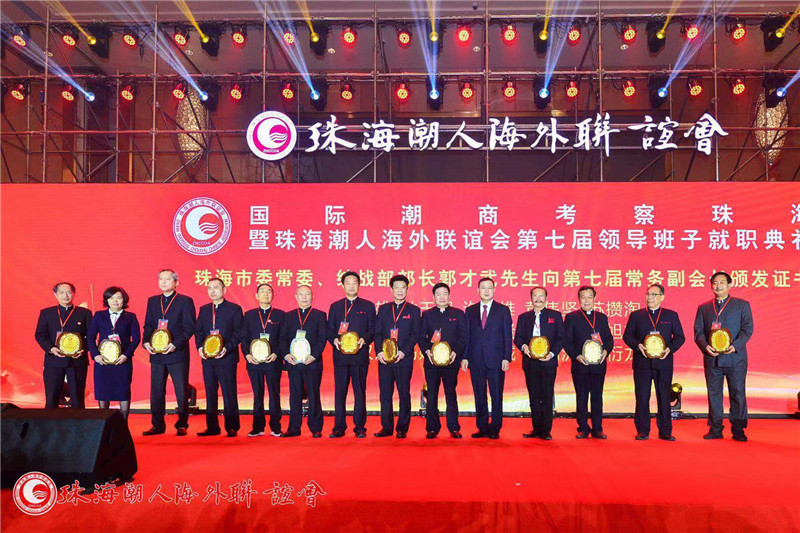珠海市委常委、统战部部长郭才武向珠海潮联会第七届常务副会长颁发证书