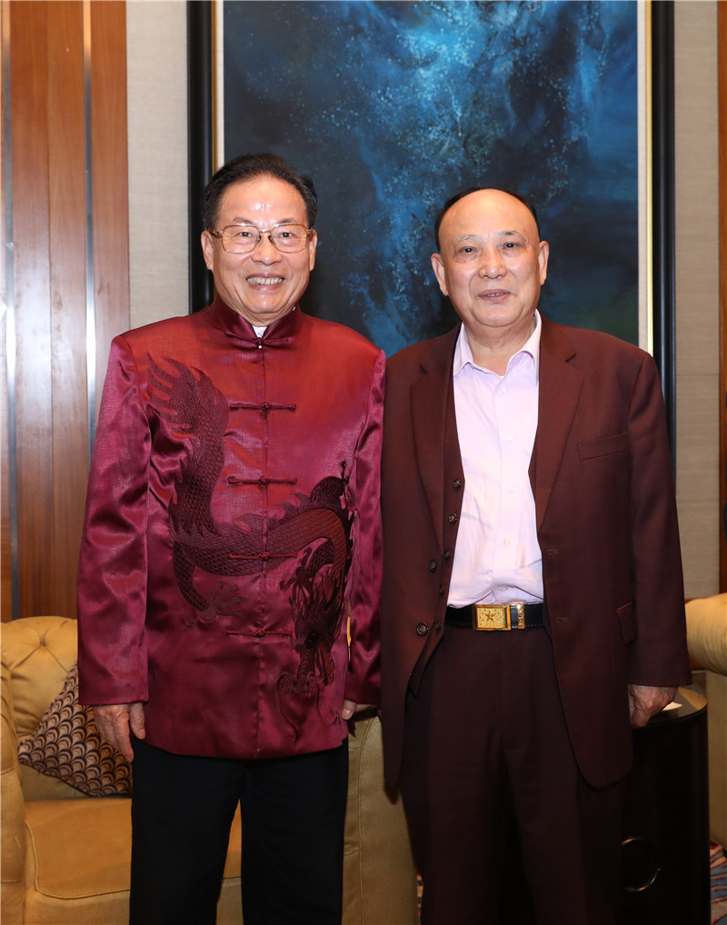 我会会长吴木棠(左)与珠海潮联会第七届永远会长、我会名誉会长郑通亮(右)合影