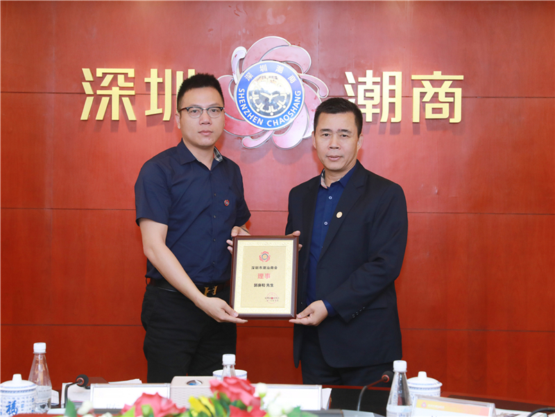 陈镇文轮值会长(右)为理事郭庚和(左)颁发牌匾