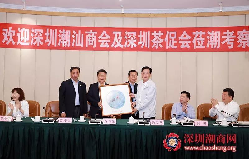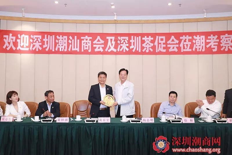 下载安装 与深圳市茶文化促进会继13-14日考察调研茶产业基地之后,4月15日,考察团一行拜访了潮州市委市政府,受到了潮州市政协主席杨志明,市委常委、市统战部长徐和,副市长胡鹏,市农业农村局调研员陈邦宇等接待,并进行座谈交流,就如何推进加快茶产业的一二三产业融合,做强做大潮州单丛区域品牌,如何将潮州发展融入大湾区建设等方面问题展开深入讨论。