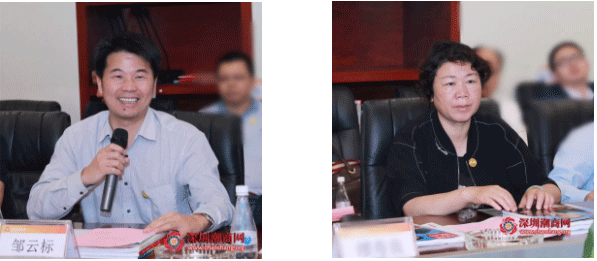 深圳市东源商会常务副会长邹云标(左)、刘建玲(右)讲话