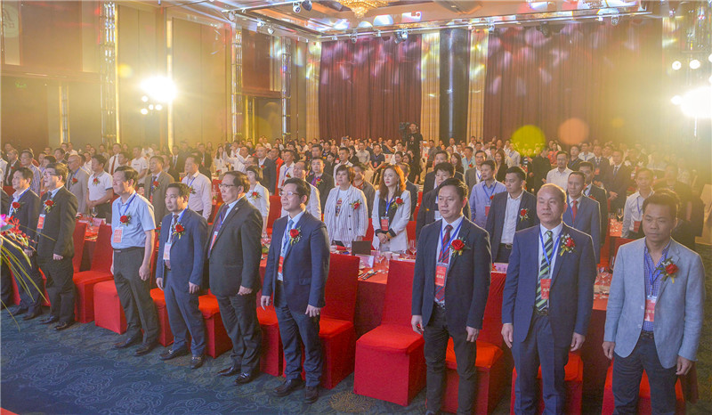 在庄严的中华人民共和国国歌声中,第五届国际普宁潮商合作发展高峰论坛暨深圳市2019普宁商会会员大会缓缓拉开帷幕。