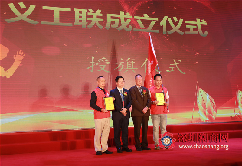 积极回馈家乡公益慈善,是一家成功商会血液中优秀的基因。商会义工联的成立无疑是让商会成为一个更有社会责任感、有凝聚力、有爱心的温暖大家庭。黄楚龙会长、周南执行会长共同为义工联队长张成宾、执行队长陈汉宜颁发旗帜及牌匾。