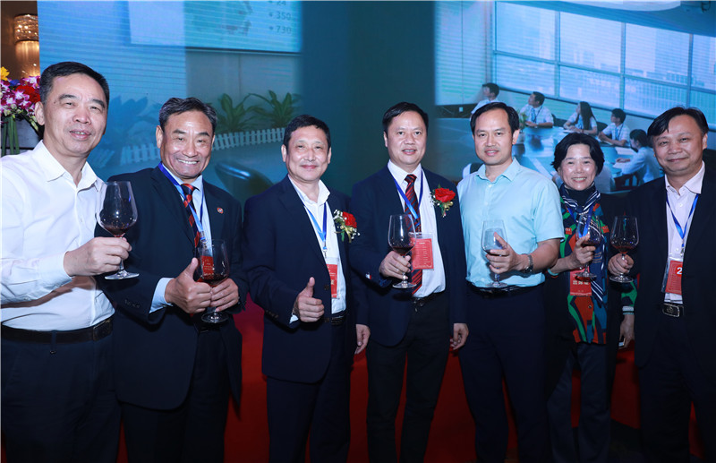在黄楚龙会长的带领下,商会领导班子上台向远道而来的嘉宾们举行祝酒仪式。