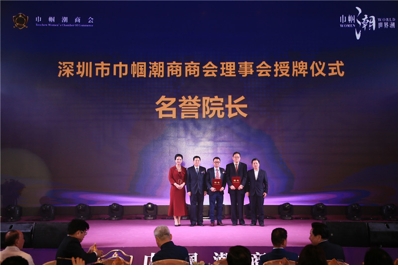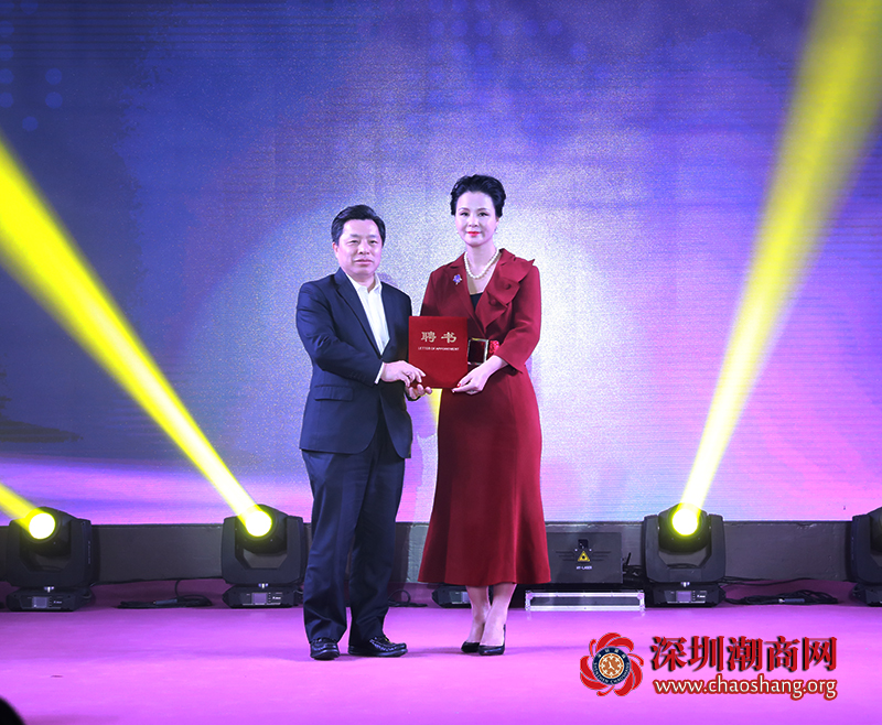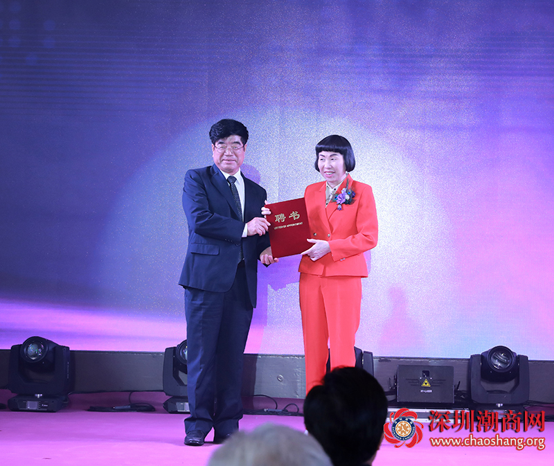 深圳市委原副书记庄礼祥为巾帼潮商会监事长纪翠璇颁发聘书
