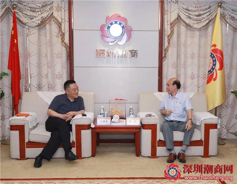 邓东书记对王曙彩副书记一行的到来表示热烈欢迎和衷心感谢,并以“一+二+三+四+五”介绍了商会党建工作经验与做法:一、商会把党建工作写入章程;二、党务工作五个平台、党支部建设“七个一”服务;三、三个离不开:离不开深圳市委、市非公党委的领导及各有关部门的大力支持,离不开潮汕商会领导的大力支持,离不开党委班子几位退休老党员的大力支持;四、党委依托商会的资源和优势,针对新时期非公党建工作的特点,践行夯实“基础党建”、推进“青春党建”、打造“活力党建”、倡导“先锋党建”等“四个延伸”的思路和做法;五、培育和践行社会主义核心价值观和党委提出的以“五爱”(爱国、爱党、爱会、爱企、爱家)为主旨的教育。商会通过这些经验与做法,初步打开了“以商兴会,以党凝会,以会促商”的创新局面。