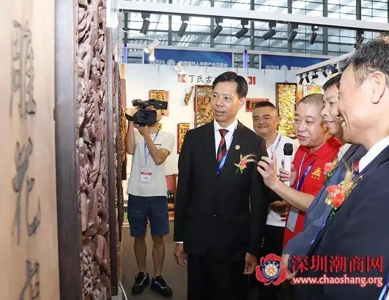 丁全是我会常务理事,也是岭南古建、木雕丁氏家族第四代传人。他本着“百年传承,匠心工艺”的精神,创立了深圳市来成号古建筑工程有限公司。2018年8月13日,为了更好地传承和发扬木雕这项古老的技艺,他积极参与了以“引领侨商科技项目合作,促进创新成果转化落地”为主题的第四届华人华侨产业交易会。这是一场来自全球五大洲的侨领、侨商携丰富的项目资源齐聚深圳,与中国投资资本、外溢发展项目对接碰撞的盛会。期间,我会会长吴木棠率队出席开幕式给予支持。