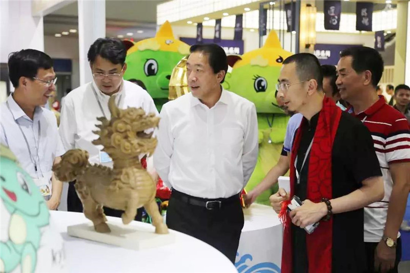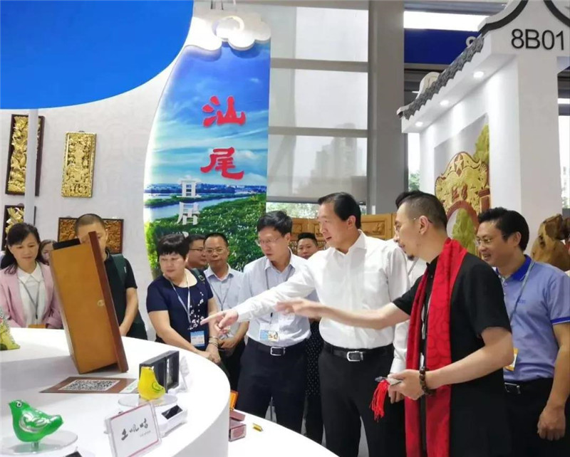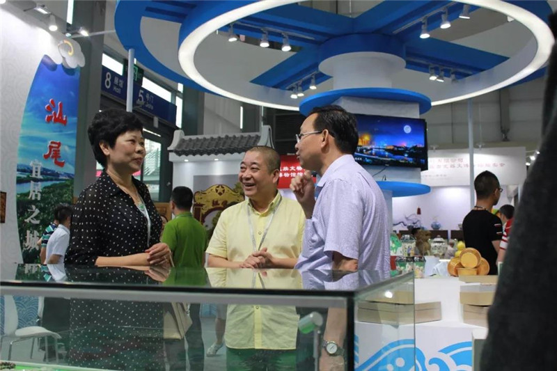 2019年5月18日下午,广东省文化和旅游厅党组书记、厅长汪一洋、汕尾市委常委、宣传部部长曾晓佳、汕尾市政府副市长余红、汕尾市文化广电旅游体育局局长蔡东升、陆丰市副市长陈月及陆丰市文化广电旅游体育局局长林进军等莅临汕尾馆,关心指导此次汕尾馆的参展工作。