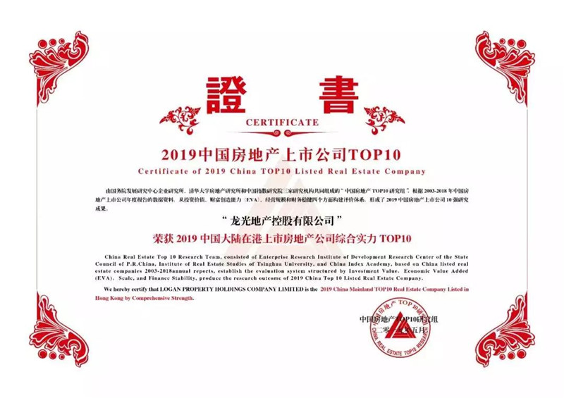 我会荣誉会长纪海鹏单位龙光地产控股有限公司凭借业内领先的综合实力、出色的经营业绩和盈利能力,在企业综合实力和投资价值再次获得行业认可,分别荣居“2019中国大陆在港上市房地产公司综合实力TOP10”第7位和“2019中国大陆在港上市房地产公司投资价值TOP10”第3位。