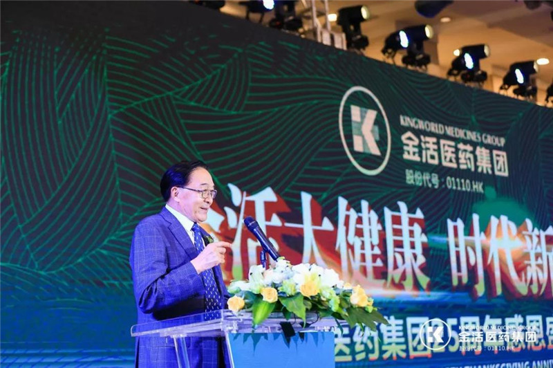 我会名誉会长、金活医药集团董事长赵利生首先发表了致辞,他说,经过金活医药集团人25年的努力,金活医药集团的业务已经扎根大陆,辐射港澳,布局全球,产品线也从药品,医疗器械,保健品领域,不断向大健康产品领域拓展。感恩时代,感恩社会各界、供应商、经销商等合作伙伴的支持。他表示将继续为实现国家的健康中国战略、为实现金活医药集团的发展目标而努力奋斗。