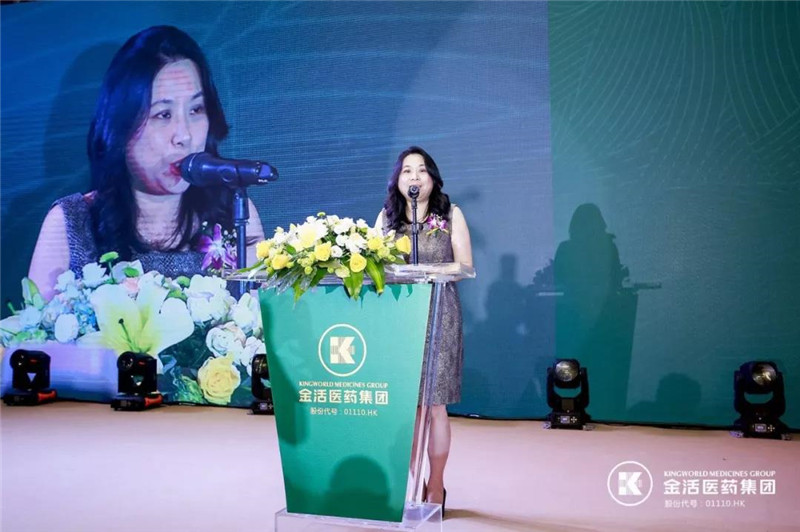 念慈菴总厂谢慧淦董事对和金活医药集团共同开发中医药市场的峥嵘岁月历历在目,她祝贺金活医药集团取得的成就,感佩赵利生在推动深港中医药发展的高瞻远瞩和魄力,也感恩金活医药集团全体人员以及全国各地经销商的努力,并指出未来中医药市场仍然是持久战,精准营销越来越重要。
