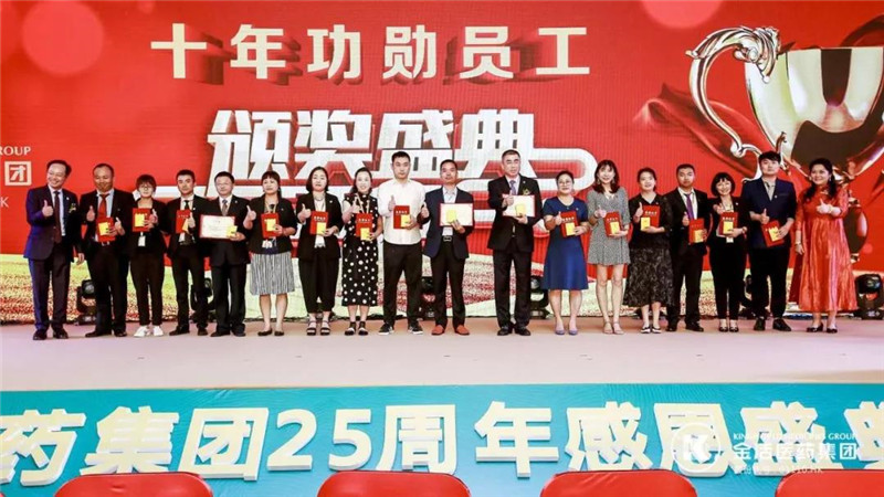 对金活医药集团十周年功勋员工进行表彰,颁发纪念奖品