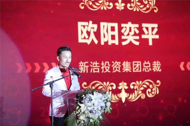 晚会伊始,我会副会长、新浩集团总裁欧阳奕平致欢迎辞。欧阳总裁对长期支持和关心新浩发展的嘉宾、朋友和新浩人致以深深的谢意和诚挚的祝福,并回顾了集团25年来的发展历程,未来五年的工作重心。欧阳总裁表示,25岁的新浩,正值青壮年,朝气蓬勃,拼搏上进,积极有为,新浩的明天可想象,可期待!