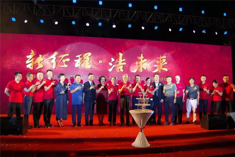 罗益洪董事长、欧阳奕平总裁、公司高层及来宾,开启香槟,庆祝新浩25岁生日。礼炮鸣响,美酒盛满杯子,预示着新浩未来收获满满。