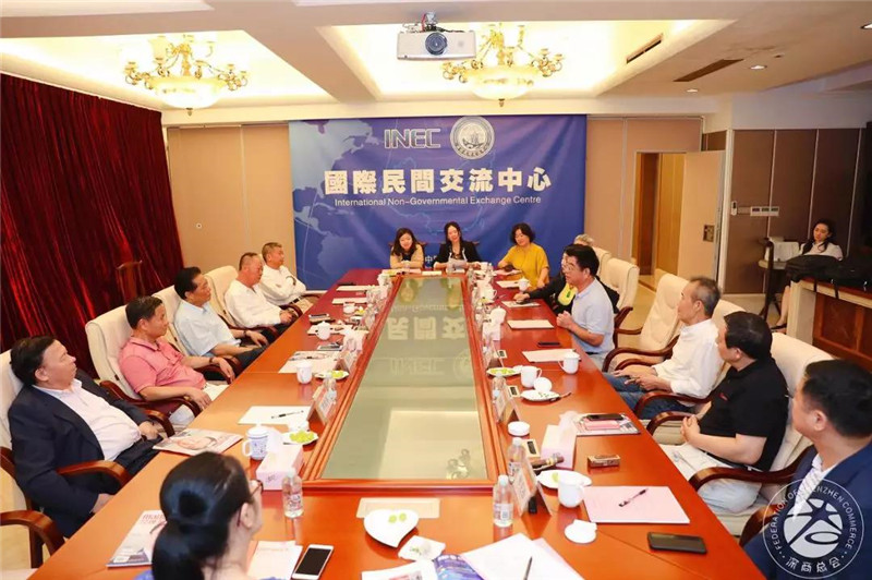 我会会长郑汉明,荣誉会长黄楚龙、黄世再,名誉会长郑桂泉,驻会会长黄育宏等热情接待,与深商座谈交流。