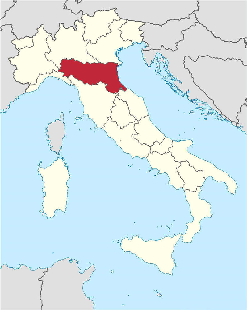 艾米利亚-罗马涅大区在意大利的位置