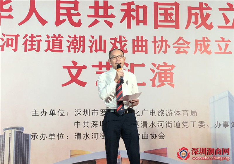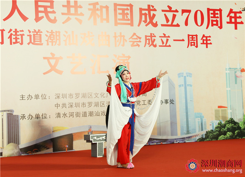2019年9月26日下午,庆祝中华人民共和国成立70周年暨清水河街道潮汕戏曲协会成立一周年文艺汇演在深圳市罗湖区清水河街道党群活动服务中心举办,本次活动由深圳市罗湖区文化广电旅游体育局和深圳市罗湖区清水河街道党工委、办事处主办,由清水河街道潮汕戏曲协会承办。