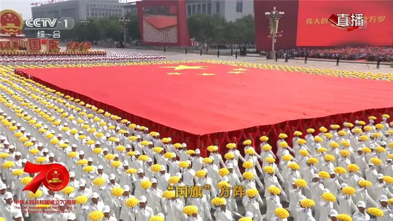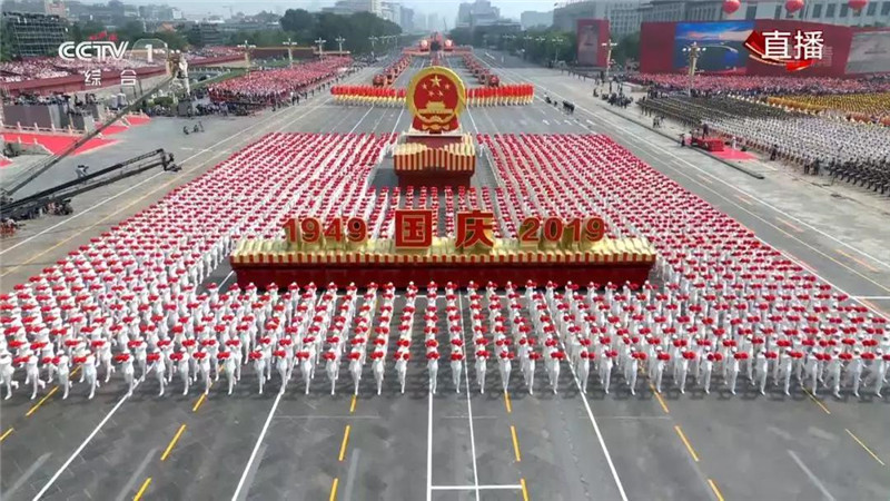 壮阔七十载,奋进新时代。2019年10月1日上午,庆祝中华人民共和国成立70周年大会在北京天安门广场隆重举行,20余万军民以盛大的阅兵仪式和群众游行欢庆共和国70华诞。中共中央总书记、国家主席、中央军委主席习近平发表重要讲话并检阅受阅部队。受阅部队由15个徒步方队、32个装备方队、12个空中梯队组成,他们依次通过天安门广场,接受祖国和人民检阅。