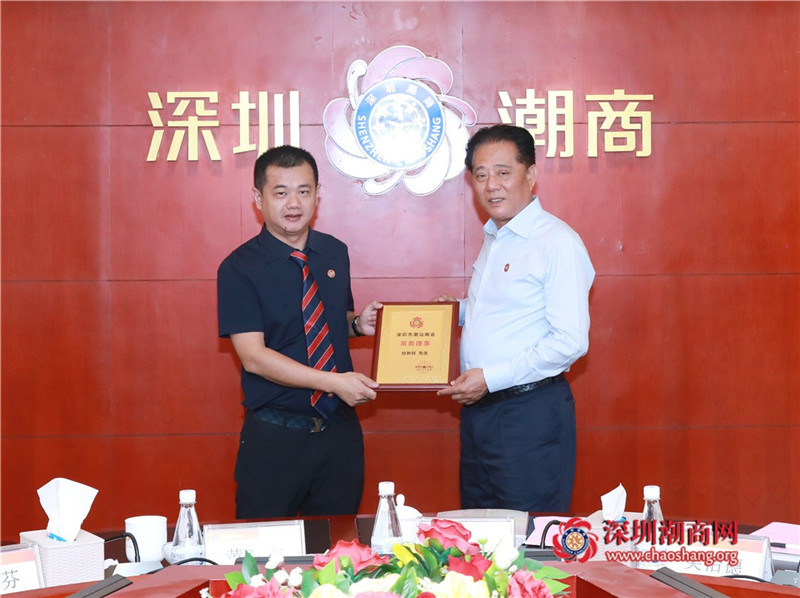 郑汉明会长(右)为常务理事杜秋标(左)颁发牌匾