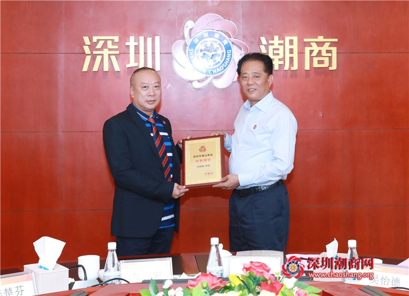 郑汉明会长(右)为常务理事陈坚和(左)颁发牌匾