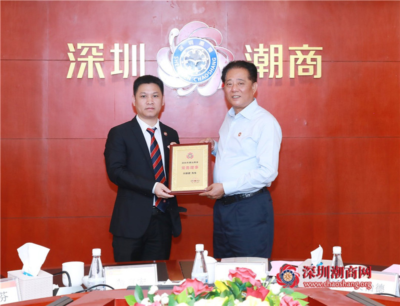 郑汉明会长(右)为常务理事叶新健(左)颁发牌匾