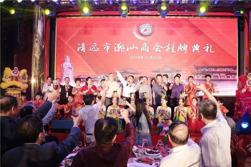 清远市潮汕商会领导班子上台祝酒