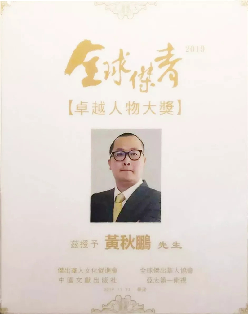 会上,我会常务副会长、深圳中华龙旅游集团有限公司董事长黄秋鹏等13位来自全球各领域的华人杰出青年同获“2019全球华人杰出青年‘卓越人物大奖’”殊荣。