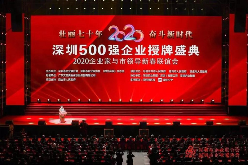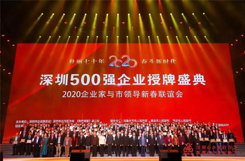 2019年12月10日,由深圳市企业联合会、深圳市企业家协会、《时代商家》杂志社主办的“壮丽七十年 奋斗新时代”深圳500强企业授牌盛典暨2020企业家与市领导新春联谊会在华润深圳湾体育中心“春茧”体育馆隆重举行。