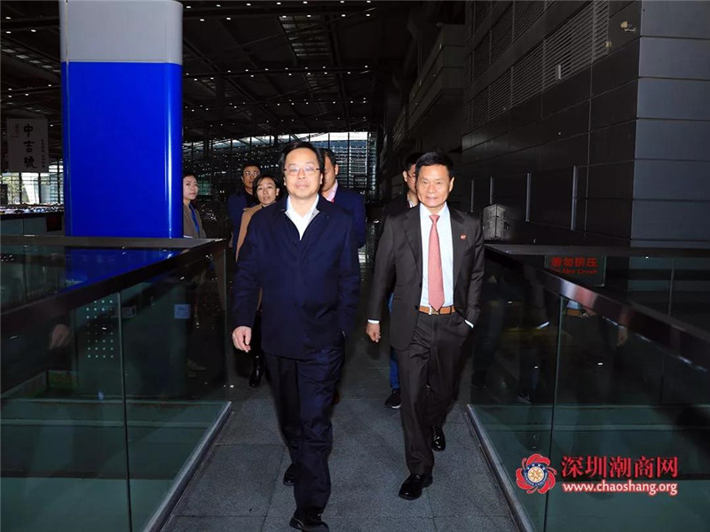 深圳市委常委、宣传部部长李小甘(左)与我会驻会会长黄育宏等步入茶博会