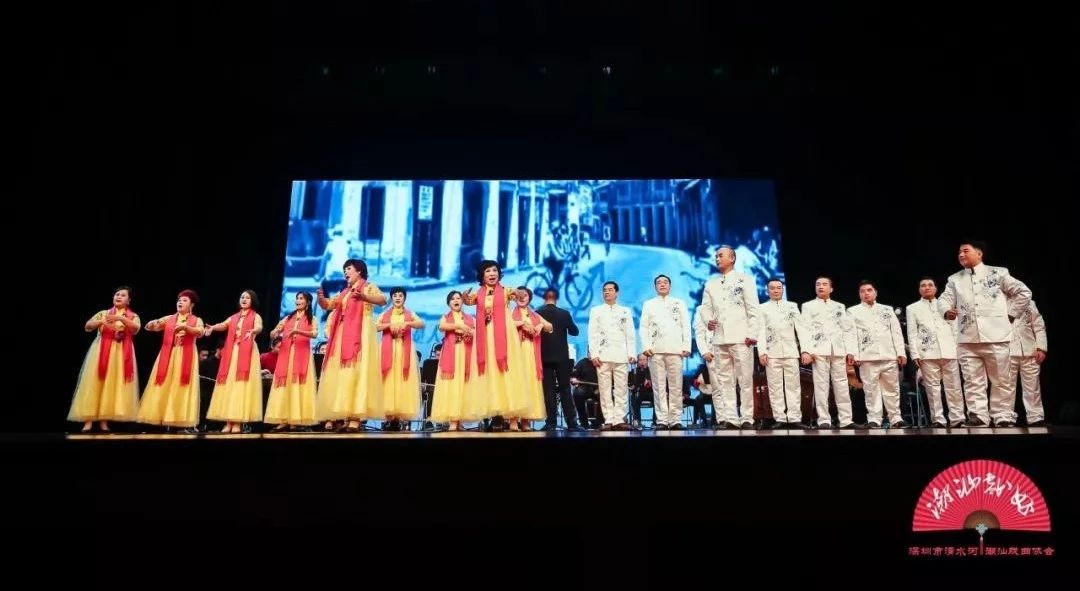 演出当晚现场人气爆棚,名家荟萃,星光璀璨。首先登台亮相的节目是潮汕戏曲协会全体演员的潮曲合唱《深圳精神代代传》。该作品是由我会名誉会长、深圳特区报社原社长吴松营创作的长诗,深情讴歌了深圳改革开放四十年来开拓奋进、勇往直前的精神。